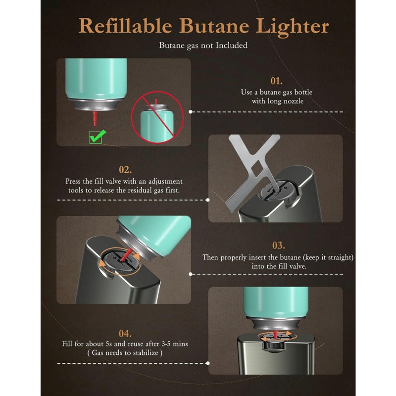 REFILLABLE - for a lifetime of use (Butane Gas Not Included)